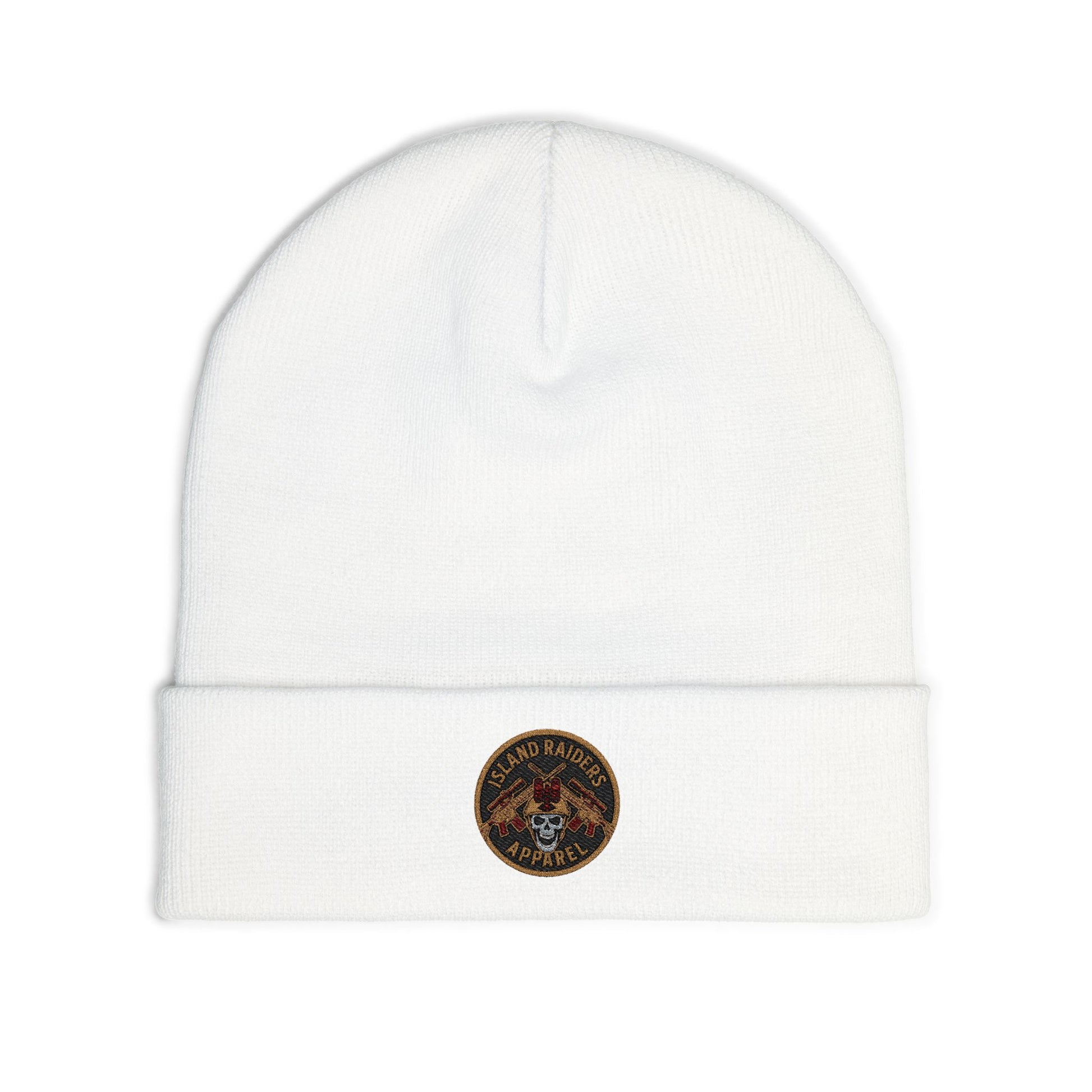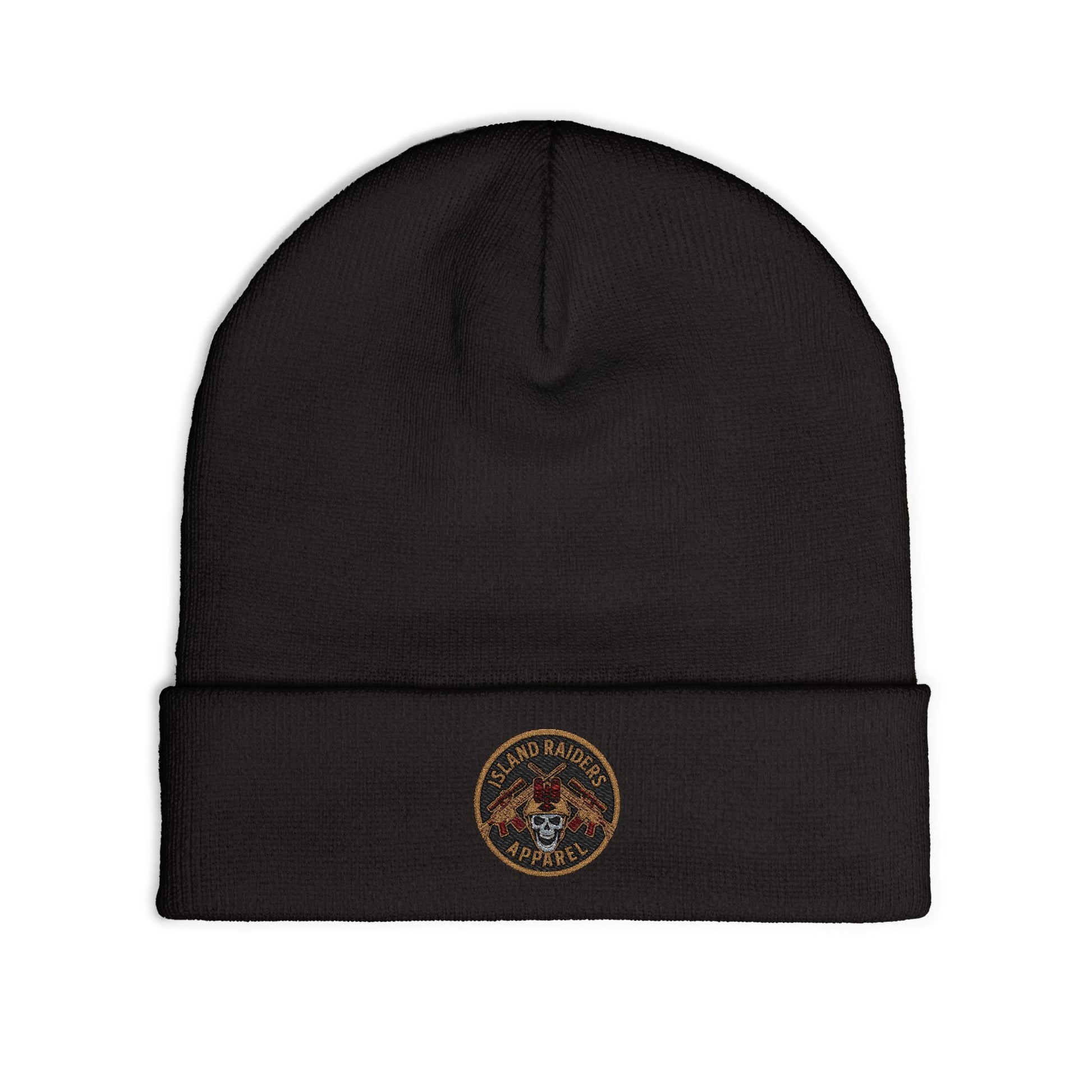 Cozy Knit Island Raiders Beanie with Embroidered Design, Winter Hat for Men and Women.